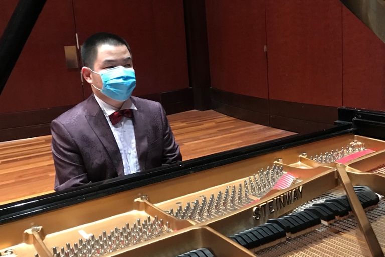 “After first hearing and touching the keys of the piano, at age three, I fell in love with the beautiful sound it produced. It was more enjoyable than that toy keyboard,” said Lai, now 25 and the winner of the Jacobs School’s recent Mozart concerto competition.